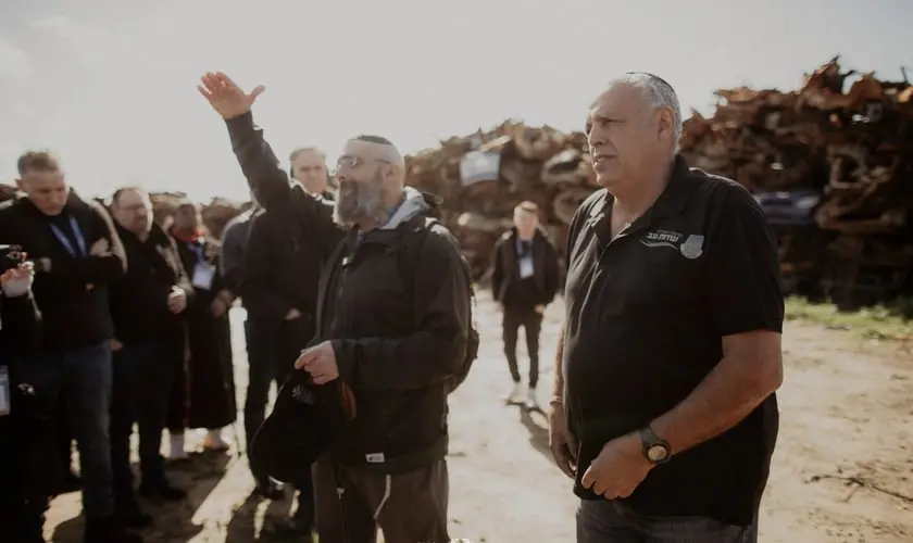 “O pátio com pilhas de carros queimados e enferrujados parecia quase sagrado, já que muitos deles já abrigaram israelenses cujas vidas foram brutalmente interrompidas”, disse David Parsons, vice-presidente e porta-voz sênior da Embaixada Cristã Internacional em Jerusalém (ICEJ, sigla em inglês), que patrocinou a viagem.